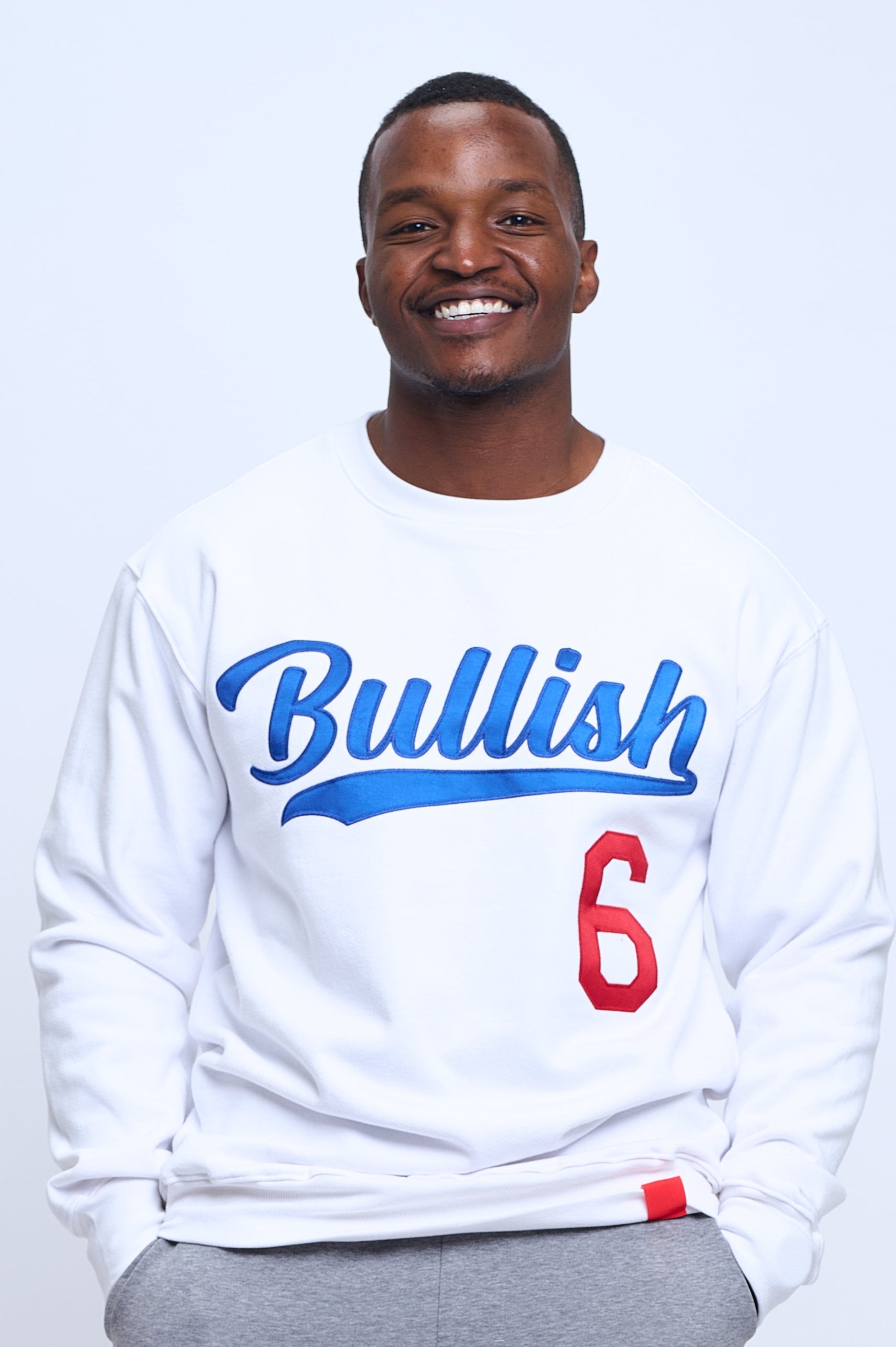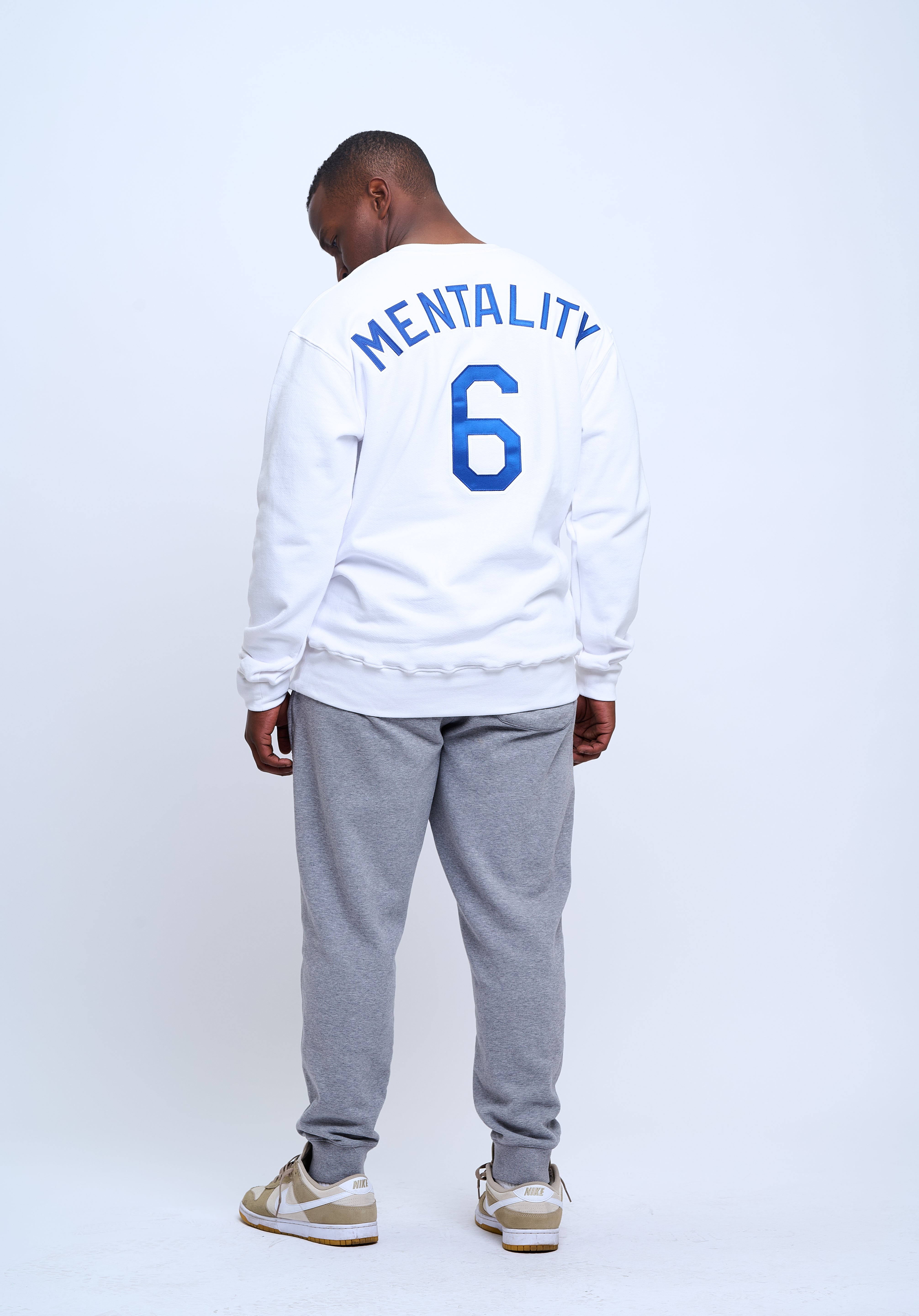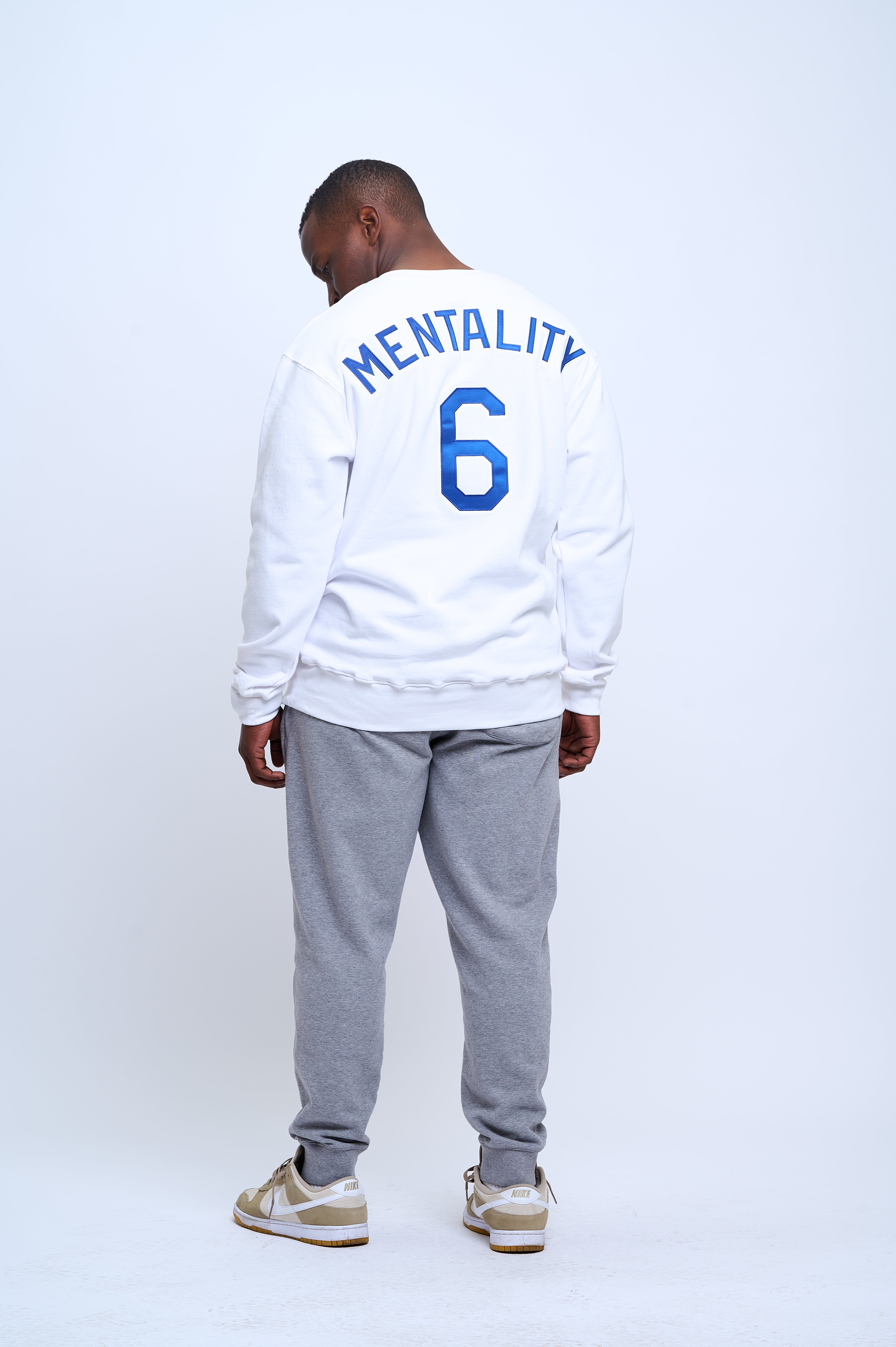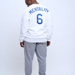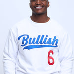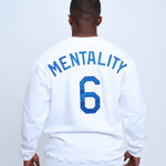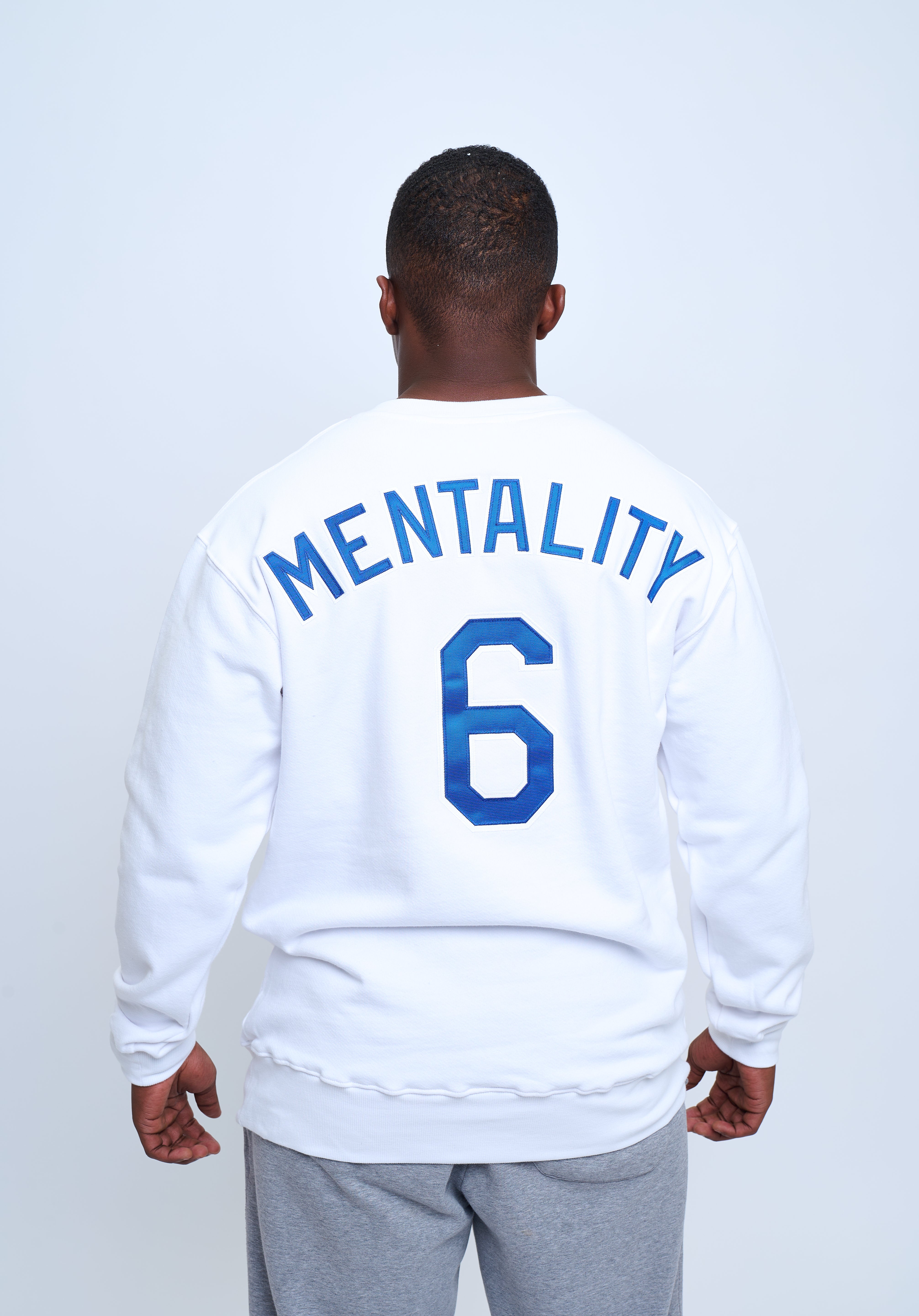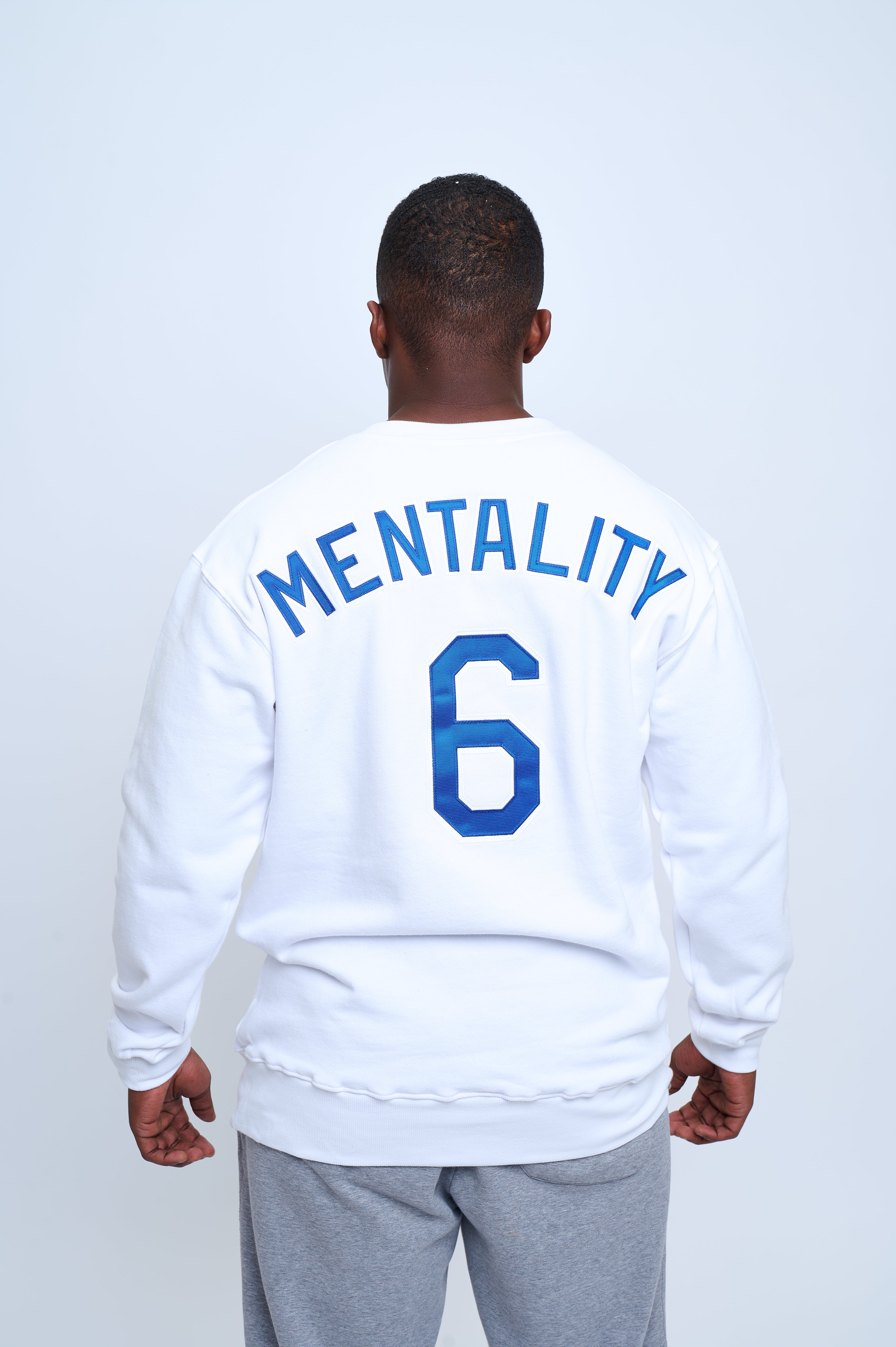 This LA Dodgers themed sweatshirt is made in 18.5 oz fleece. Product features authentic heavyweight tackle twill material, the same that is used with professional sports teams. This sweatshirt features the name "Bullish" on the front along with a red number six, which stand for the six principles that the brand represents. The garment also feature the name "Mentality," on the back in blue, along with an additional number six, which are both outlined with white tackle twill.